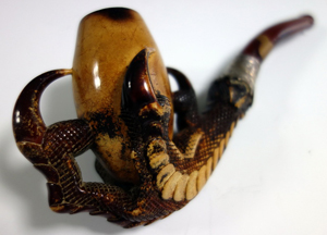 私は47歳の時にたばことパイプの吸い過ぎで喘息の症状を呈したため、たばこをやめました。症状はすぐに治まり、体質的な咳であったと後日判明しましたが、喫煙はその時以来きっぱりとやめました。それでもパイプの良いものに巡り会うと血が騒いでしまうのです。そのようなわけで私にとってパイプはもはや実用品ではなくなり、骨董・アンティークに属する観賞品、美術品となったのです。