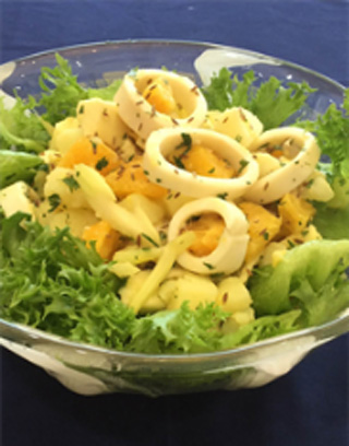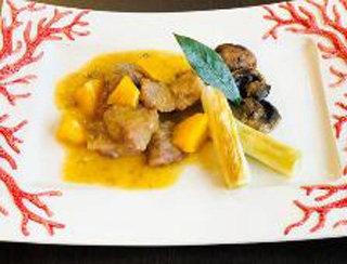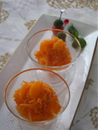 - 器に3.を汁ごと盛り、あればイタリアンパセリと薄皮を包丁でむき、半月切りにしたオレンジを添えます。