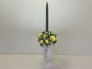 ひとつは、野趣あふれる無農薬レモンとその葉、アンティークな器を取り合わせて作りました。