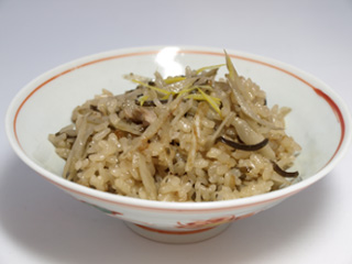 肉ごぼうと塩昆布の炊き込みご飯