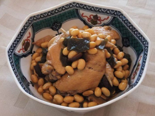大豆と手羽先・昆布の煮物