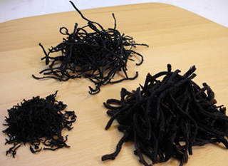 海藻の種類はとても多く、今回はそれを写真で見て頂きます。左側がひじきです。真ん中と右側が、わかめです。