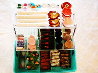 白菜の他にも食材シリーズや魚シリーズなど、様々な箸置きを旅の土産としてコレクションしてきました。あまりに数が多くなったので、道具箱に整理しております。釣り道具や工具などを入れる道具の箱です。皆さまもキッチンの整理に、道具箱をお役立てくださいね。
