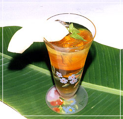 | 1. | なべに水500mlを煮立て、ジャスミン茶(茶葉5~6g)を入れて火を止め、しばらく蒸らします。 |