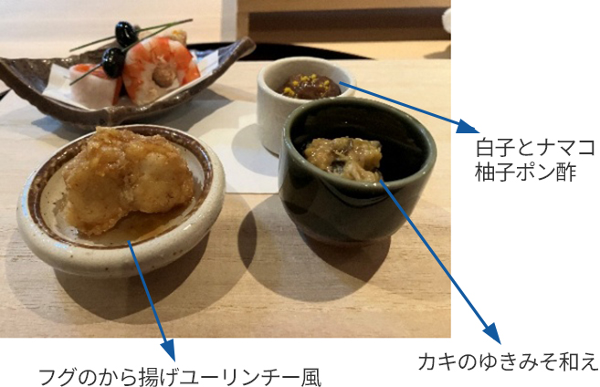 たらの白子 ヒラメのからすみ巻き