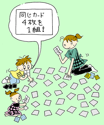 - ①色カードをバラバラに裏返して置いていきましょう。