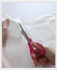クッションの部分の布を、器の大きさに合うよう(定規を利用)布切りハサミでカットします。
