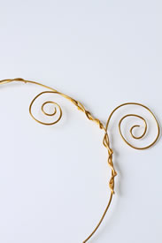 上記でできた渦巻きのアルミニウムワイヤーをリースの土台に斜めに回転するように巻きつけていく。渦巻の直線部分の半分の長さになったら、折り返して巻きつけます。