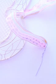 (表側にお花をつけるために、チュールをしっかりつけます。)