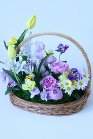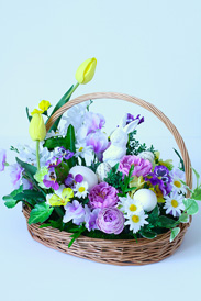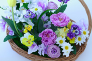 - 今回のアレンジは、春の野原に花がいっぱい咲いていて、生命が芽生えるようなイメージで。