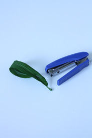 - 長めの葉はホチキスなどを使って、輪にしてアレンジしても面白いです。