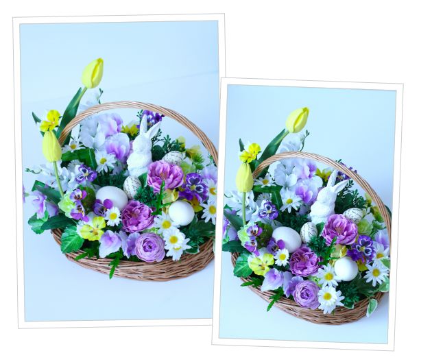 - 大体の最終形をイメージしながら、アレンジしていく(卵や、ウサギのオーナメントの置く位置をある程度意識しながらアレンジしていく)