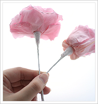 バラを広げる('07 8月 メリア~*~バラをひろげる~*~ の回を参照)- カーネーションのワイヤリング・テーピング('07 6月 Box Arrangement ~*~ボックス アレンジ~*~ の回を参照)