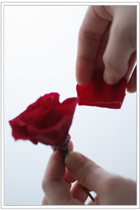 中心の芯あたりの花びらが5~7枚くらいになるまで、花びらをとりはずします。 -