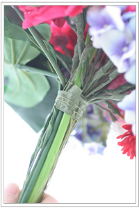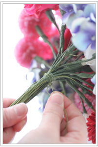和ひも(ワイヤー入り)を形作り、しっかりと根元をワイヤーでしばります。