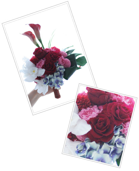 その際、お花の表面がぴったり同じ高さではなく、多少の高低をつけたほうが、まとまっていながらもより動きをだすことができます。