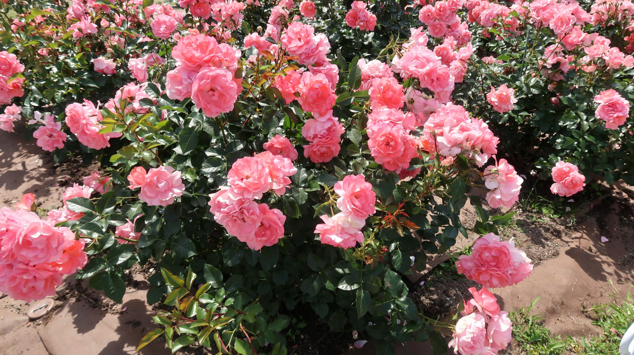 バラ園には、約120種1,400本のバラが植栽されています。無料で見られるのも良いですね。