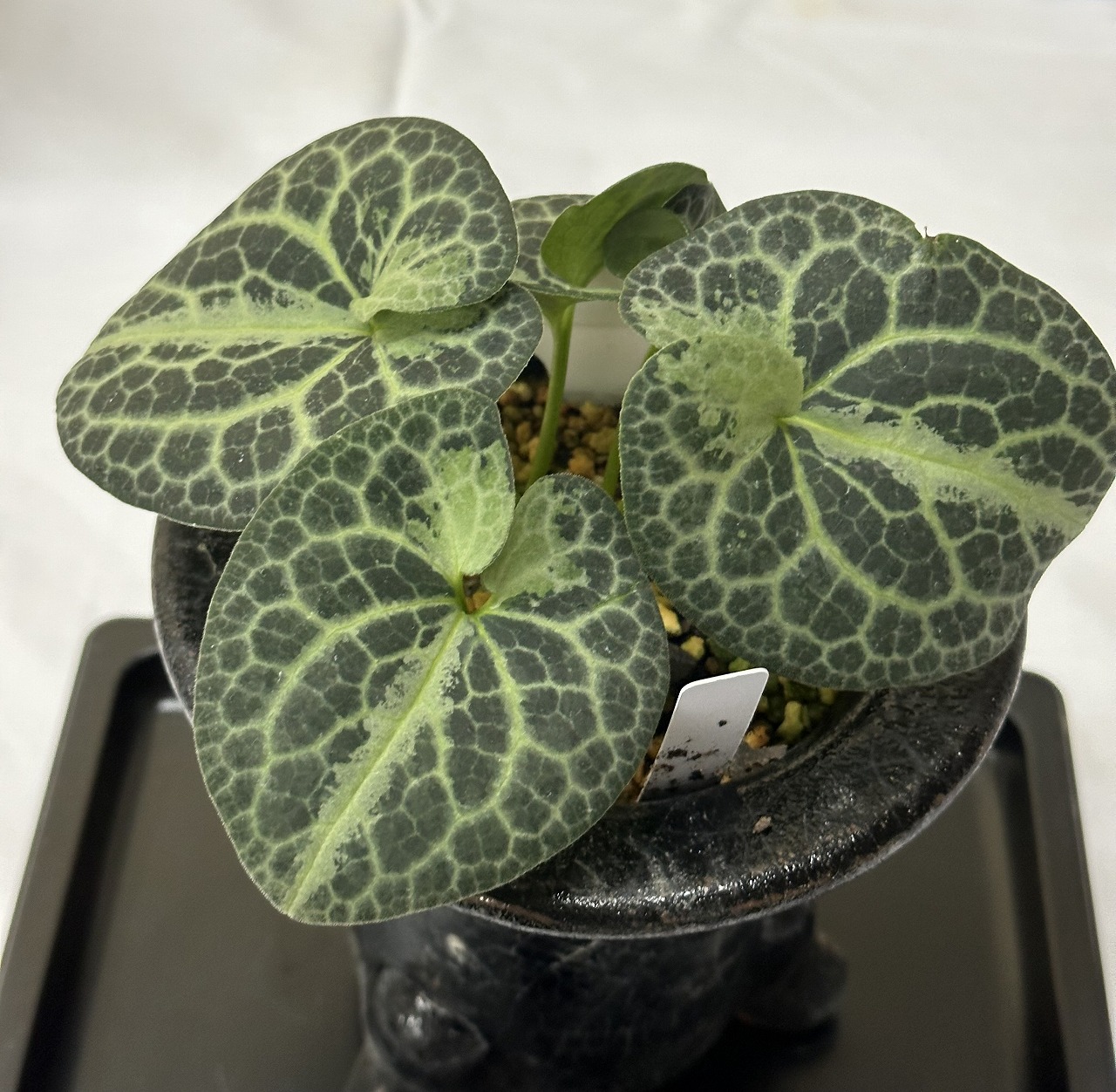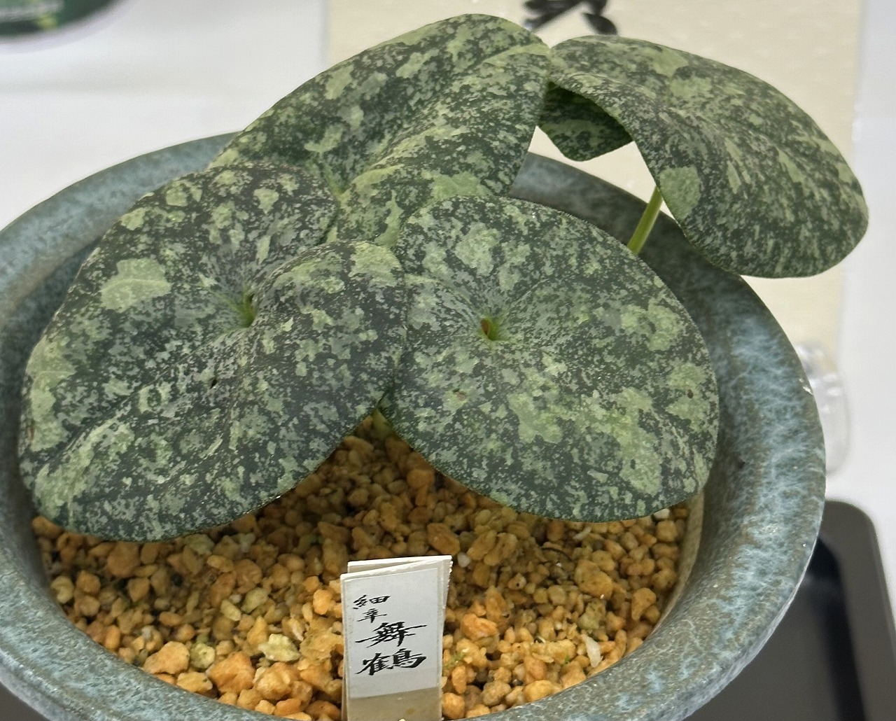 舞鶴(細辛)・・・銀斑が入り独特な模様、葉が少し内側に巻く。