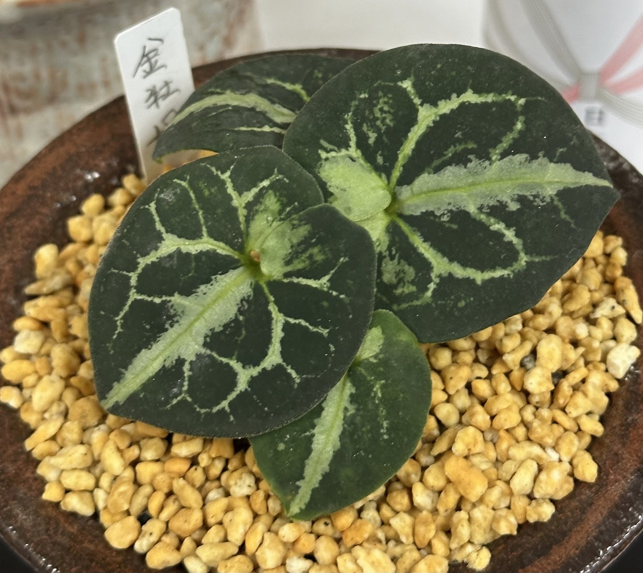 金牡丹(細辛)・・・葉の中央の斑を谷と言います。付け根の斑を蝶といいます。