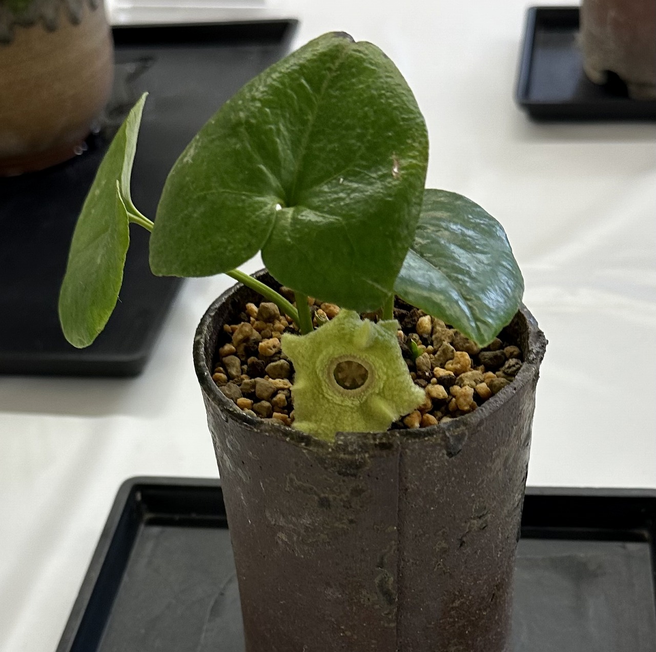 クロヒメカンアオイ八重咲素心・・・素心で八重咲の二芸品。