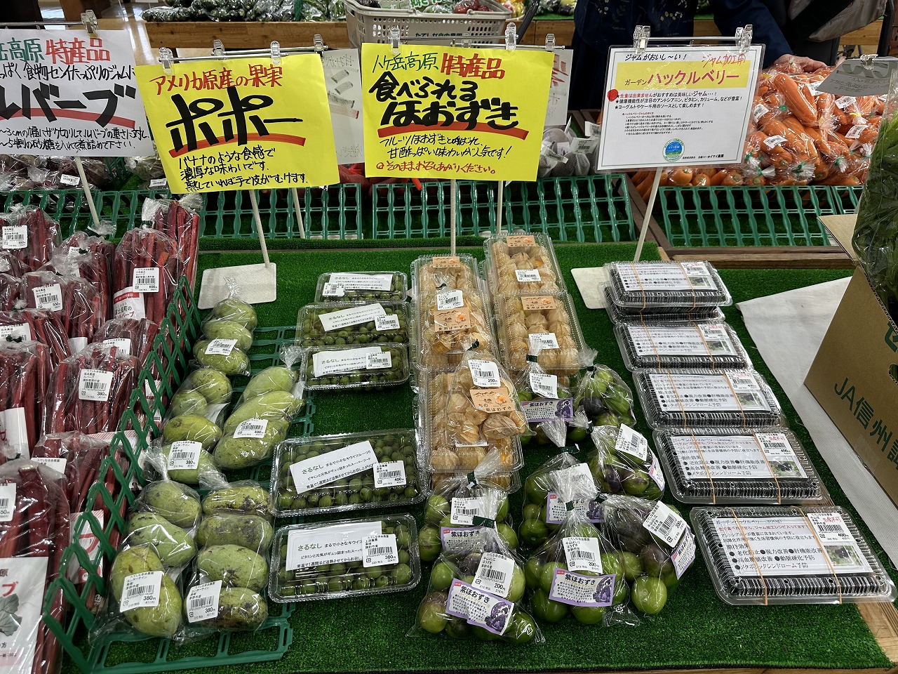 茅野の「たてしな自由農園」に今年も、寄りました。地元(愛知)では見ない物が出ていました。