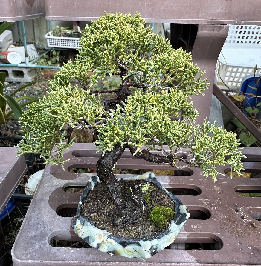 真柏(しんぱく)・・・ヒノキの仲間です。葉が柔らかく丈夫なので盆栽初心者向きです。