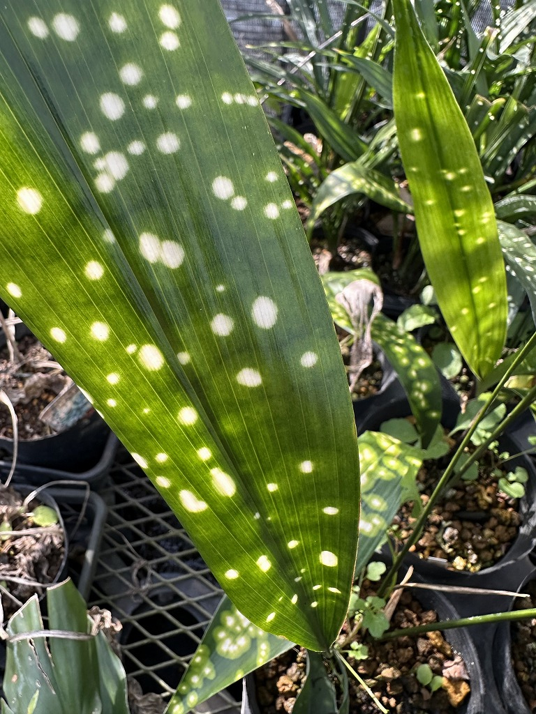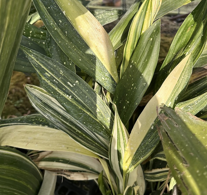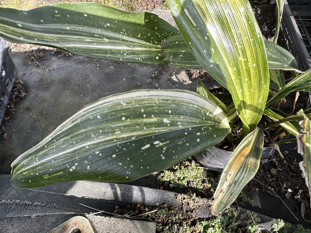 「満月」・・・新葉が白く出て、徐々に緑になっていきます。まだまだ珍しい品種です。大型種です。