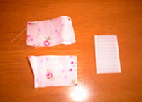 | 13) ラベンダー入り袋にもマジックテープを縫い付ける。 |