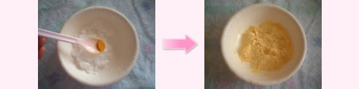 | 4)ハーブパウダーで色をつけます。(ハーブパウダーはハーブ専門店で販売されています。) | ||||