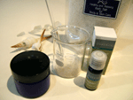 | ① | 天然塩をガラスの容器に30g用意して、そこへペパーミント5滴を入れ、ふたをしてよく振ります。 | ![]() |