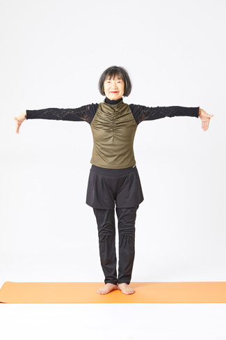 手の指先・手首関節・肩関節・背筋に刺激が入り胸部が広がる