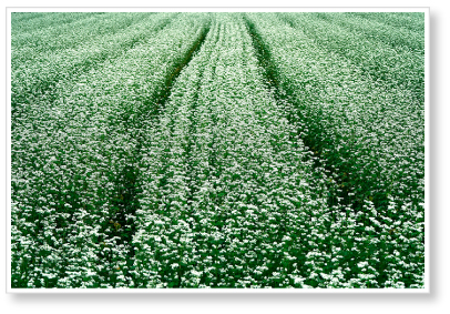 三重県の北西部に位置する藤原地区の蕎麦畑の写真です。山間部の里山に最近多くみられる風景です。近くには『赤蕎麦』も栽培している地区もあり秋の風景として楽しめます。