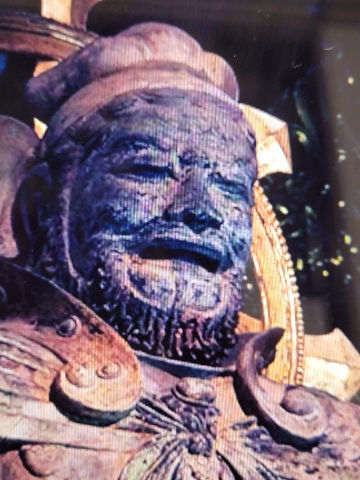 天武像と著者が考える当麻寺金堂の四天王塑像。当麻寺は天武とゆかりがあり、その重要な金堂の髭の生えた雄々しい姿はまさに他の四天王と違い、威厳に満ちており、猛々しいとされた天武にふさわしい。