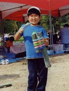 <Bコース> 大人も子どもも真剣なまなざしで、午前中の続き、ツールボックス作り。「動くようにしたいな!ビー玉入れておもちゃにできるかな?」と、イメージもふくらむ。出来上がったら、今度は竹とんぼや竹のけん玉作り。竹とんぼの羽根を薄く削るのにみんな悪戦苦闘。でも、調整しながら遠くへ飛ぶようになって大喜び!